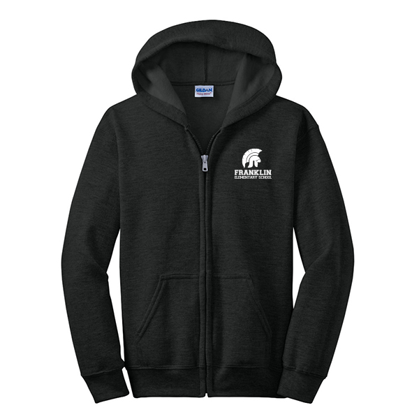 Gildan Youth Heavy Blend Full-Zip Hooded Sweatshirt with Franklin Elementary Logo